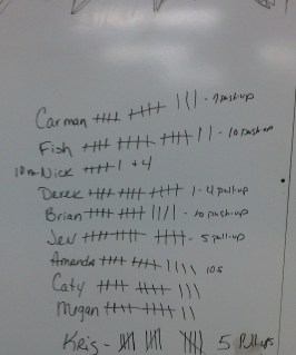 6AM THANKSGIVING WORKOUT November 24, 2010 Lauren Uncategorized One comment 20 MIN TIME LIMIT AS MANY TIMES AS YOU CAN: 5 PULL UPS10 PUSH UPS15 SQUATS Great Job everyone enjoy your Thanksgiving you sure did make room for it.. Related