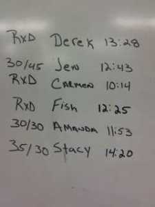 Heather Bergeron did it in 8 minutes flat! She really is my hero! Talked to JJ today and let her know that she was missed. Good job today people. See ya' in the AM!
