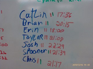 5am/6pm December 15, 2010 Lauren Uncategorized One comment Three rounds for time of:Run 400 meters15 Pull-ups50 Squats15 Pull-ups Related