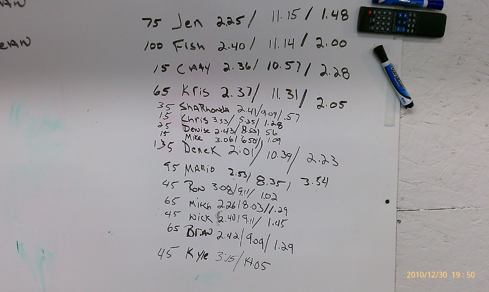 5am/ 6 pm December 29, 2010 Lauren Uncategorized Comments Off on 5am/ 6 pm 20 push ups – 5 squat cleans (135#/95#) 15 push ups – 10 squat cleans 10 push ups – 15 squat cleans 5 push ups – 20 squat cleans Related