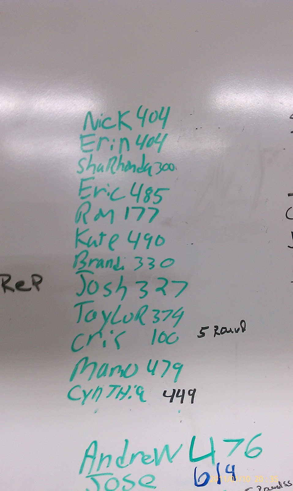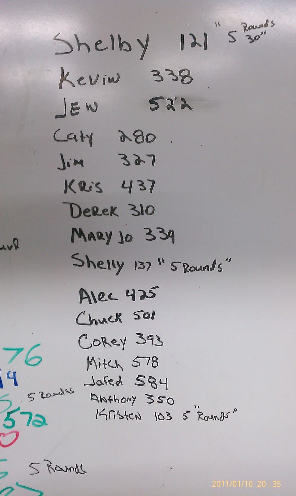 Squat Cleans: 5 X 5 65-70-75-85-95-100 (through an extra set in there) Air Squats: 55-54-53-53-50-52-50-51-50-54 total 522. See ya' tomorrow!