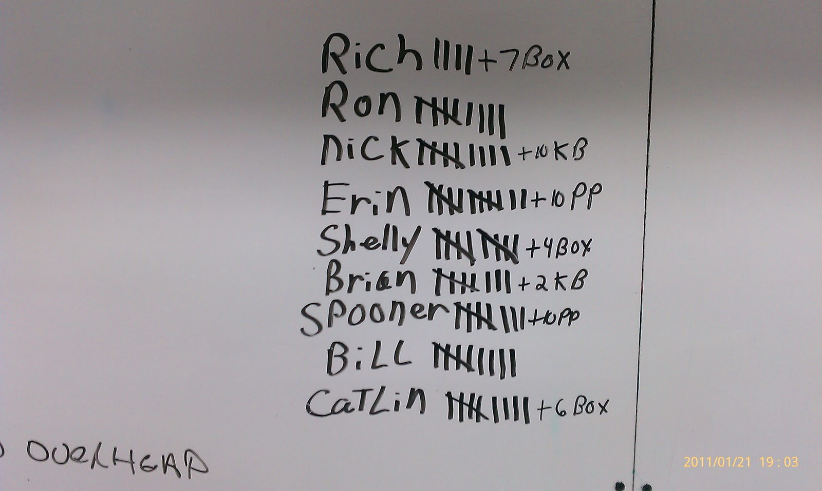70 LBS, 1 PD, 24″ BOX – 11 ROUNDS EVEN. NICE IMPROVEMENT FROM 1/04/11 WHEN I USED 65 LBS, 1 PD, 24″ BOX AND DID 10 ROUNDS AND 5 PUSH PRESSES! CAME HOME AND SAW THE GYMGA DAILY FITNESS CHALLENGE – MAX BURPEES IN 1 MINUTES. I GOT 19… WOOHOO….FEELING GREAT AND READY TO TAKE ON THE MADNESS OF THE DAY! SEE YA'LL TONIGHT.