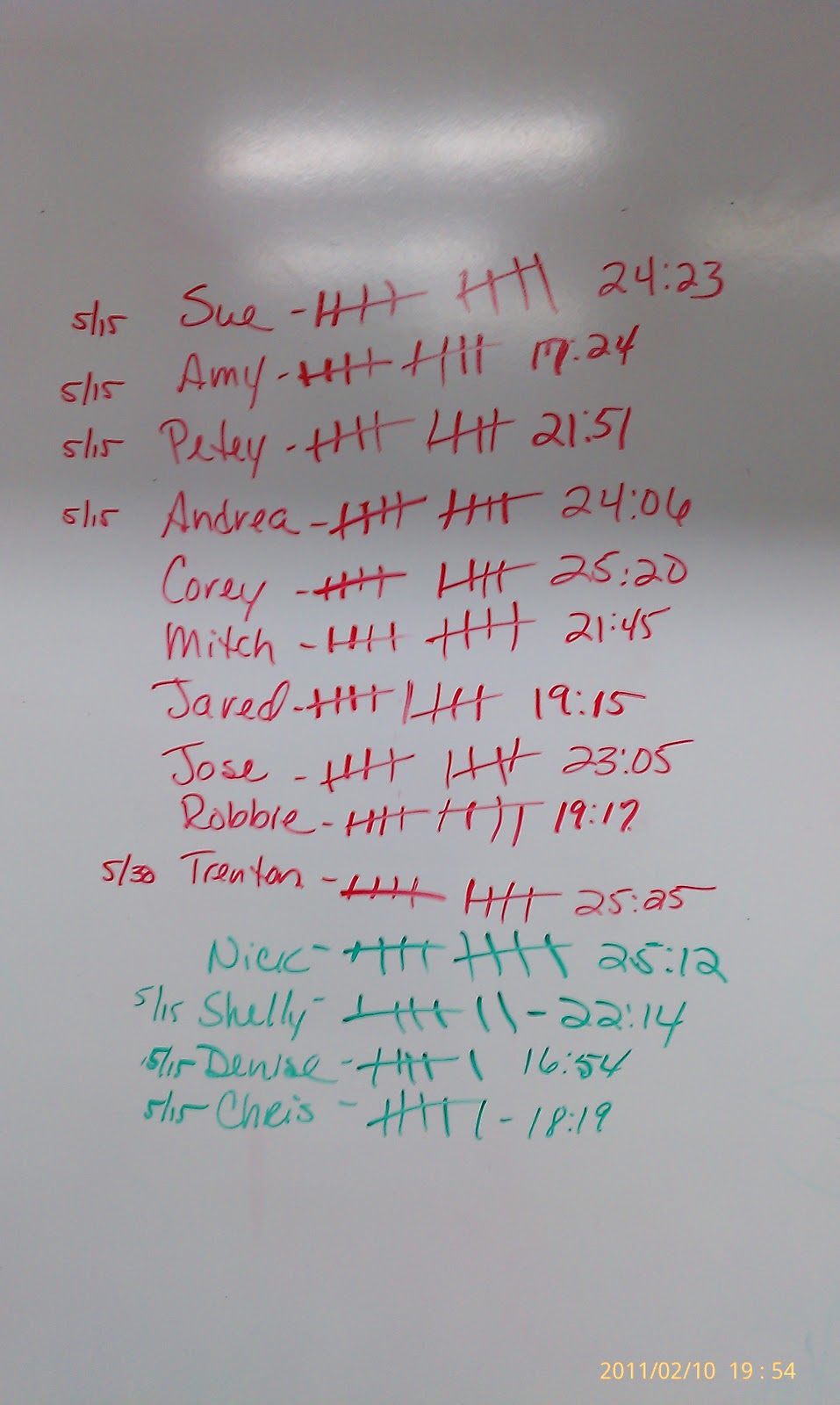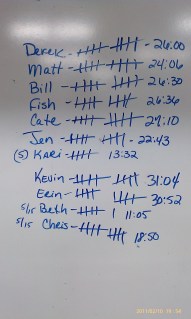 2/10/11 5AM,6AM,5PM,6PM,7PM February 9, 2011 Lauren Uncategorized Comments Off on 2/10/11 5AM,6AM,5PM,6PM,7PM RON WORKING THE KB SWING 10 Rounds for Time 10 Burpees 200m Run 30 Air Squats Related