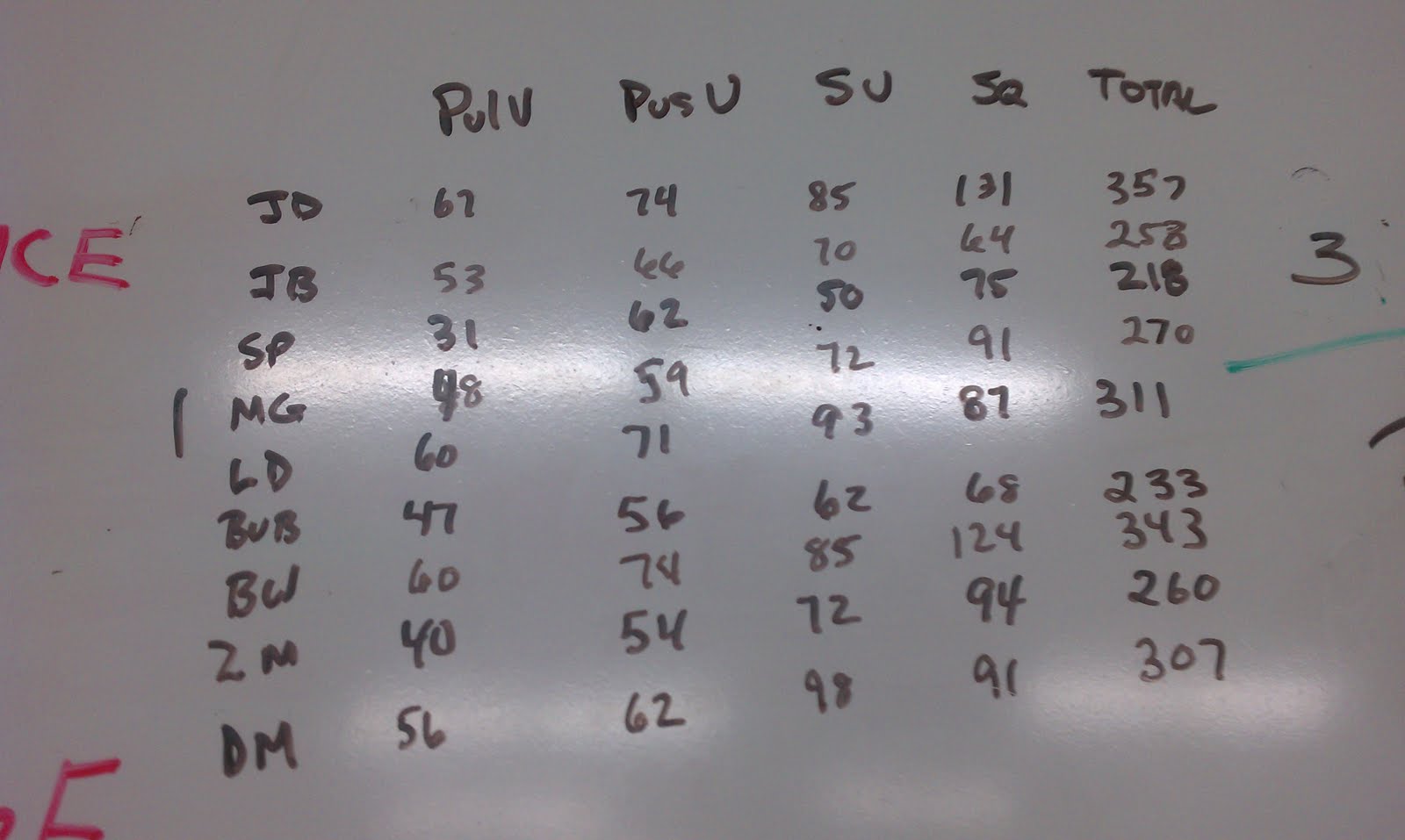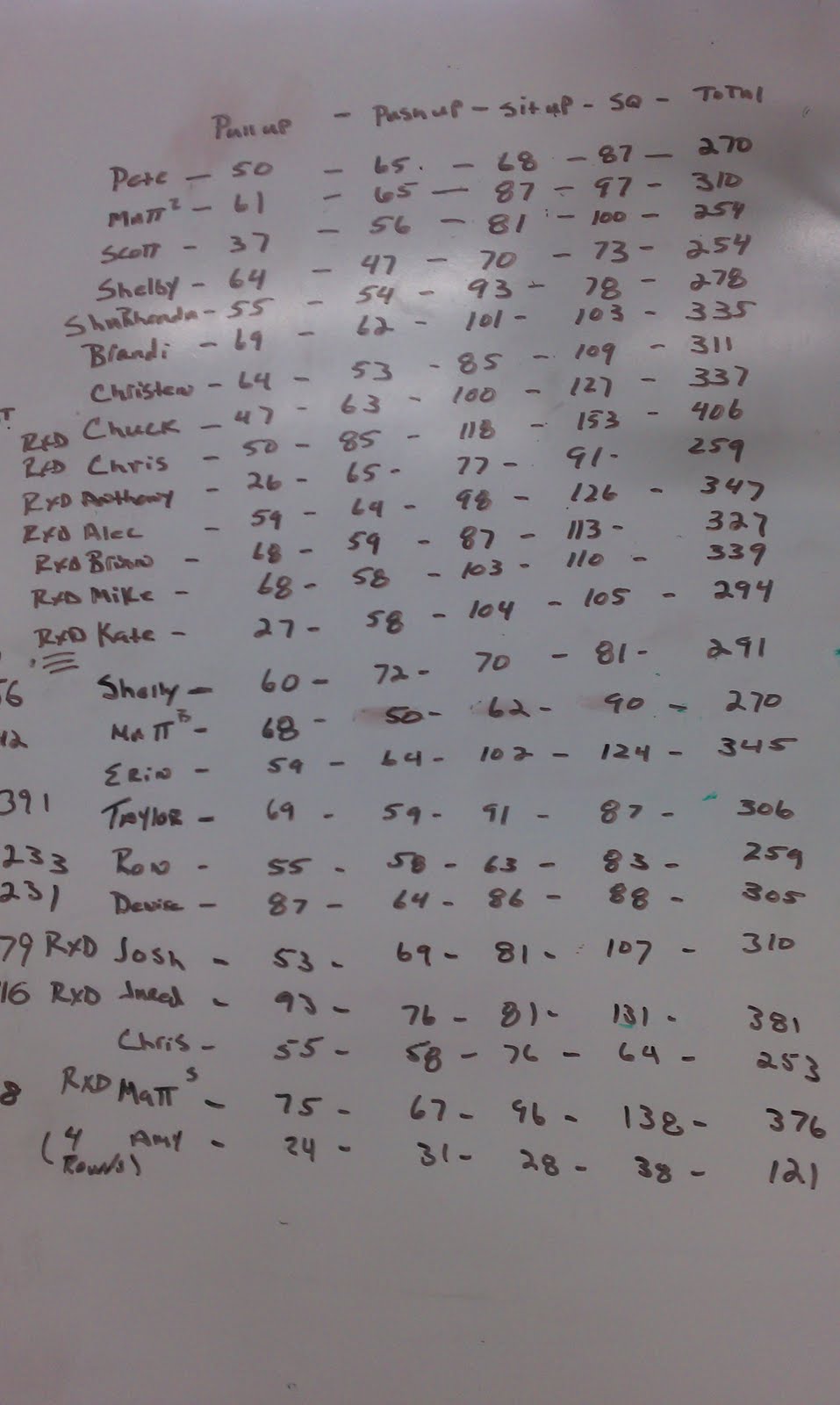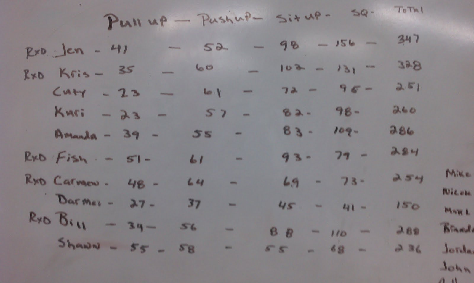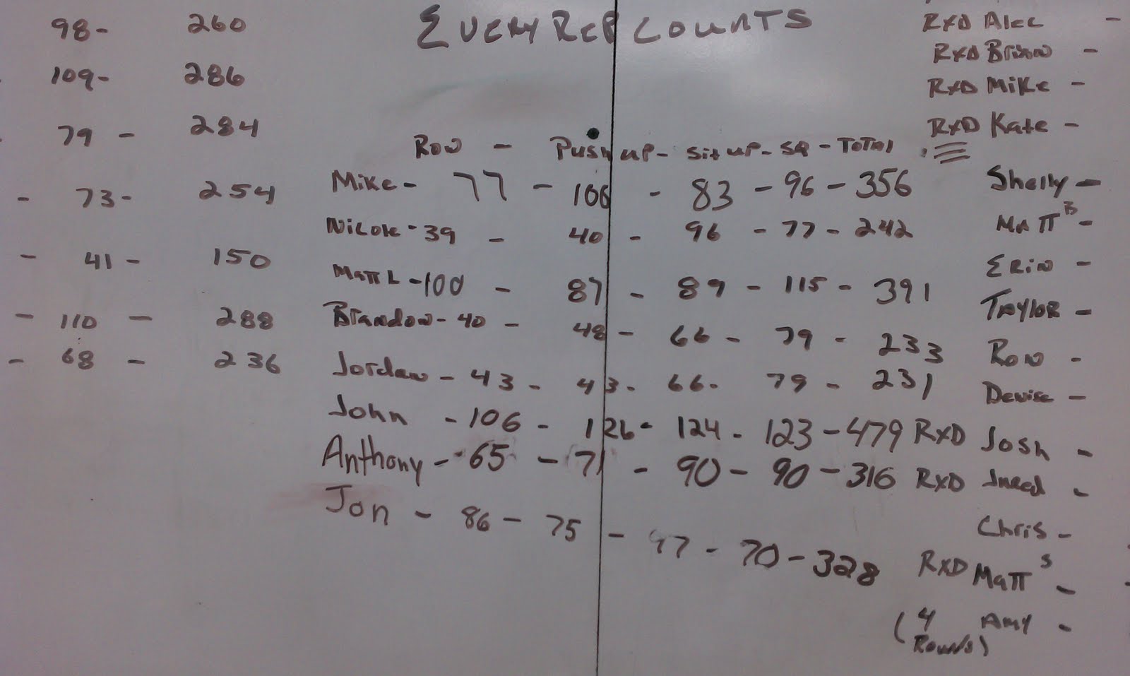 Complete 32 intervals of 20 seconds of work followed by ten seconds of rest where the first 8 intervals are pull-ups, the second 8 are push-ups, the third 8 intervals are sit-ups, and finally, the last 8 intervals are squats. There is no rest between exercises. EVERY REPS COUNTS..