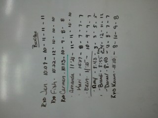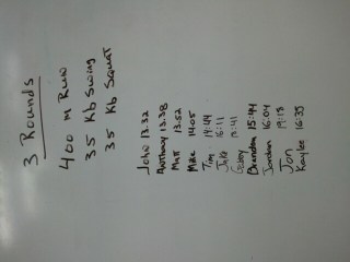 5- 05-11 5am, 6am , SEP 5PM, 6pm, SEP 7PM May 4, 2011 Lauren Uncategorized One comment 1000 meter row45 pound Thruster, 50 reps30 pull-ups Related