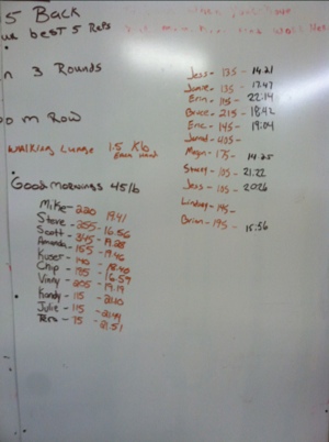 Am 5,6,9,11/pm 4,5,6 July 29, 2012 lumpy6488 Back Squat, Good Mornings, Lunges, Rowing Comments Off on Am 5,6,9,11/pm 4,5,6 20 mins 5×5 Back squat Then 3 rounds 5oo m row 50 m walking lunges 1.5pood 25 good mornings 45lb Related