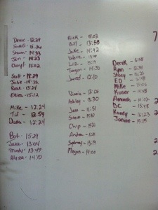 7X1 3 Hang Squat Cleans “just above the knee“+ 1 Push Jerk – heaviest possible, rest 60 sec.
