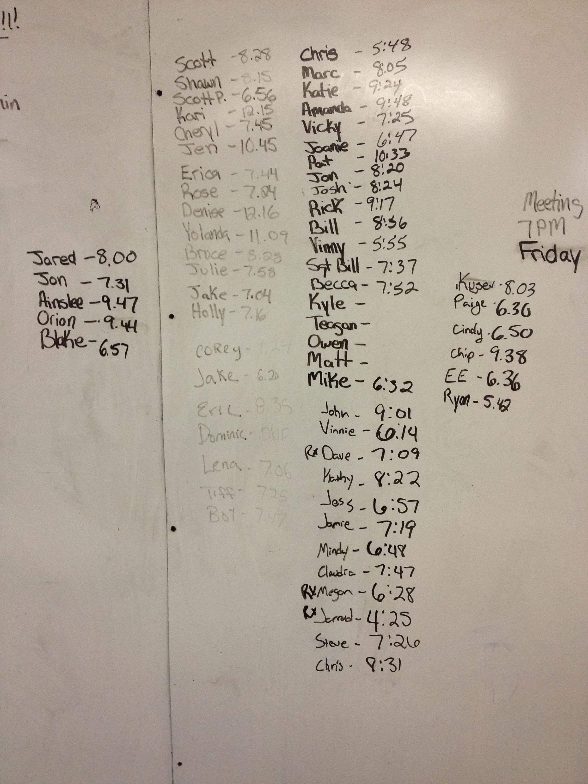 5, 6, 9, 11AM; 4, 5, 6PM November 5, 2012 Matty Ice Uncategorized Comments Off on 5, 6, 9, 11AM; 4, 5, 6PM Back Squat 5×3 @ 85% 9 Squat Cleans 185/125 30 “HR” Push Ups 100ft Bear Crawl 6 Squat Cleans 20 “HR” Push Ups 100ft Bear Crawl 3 Squat Cleans 10 “HR” Push Ups 100ft Bear Crawl Related