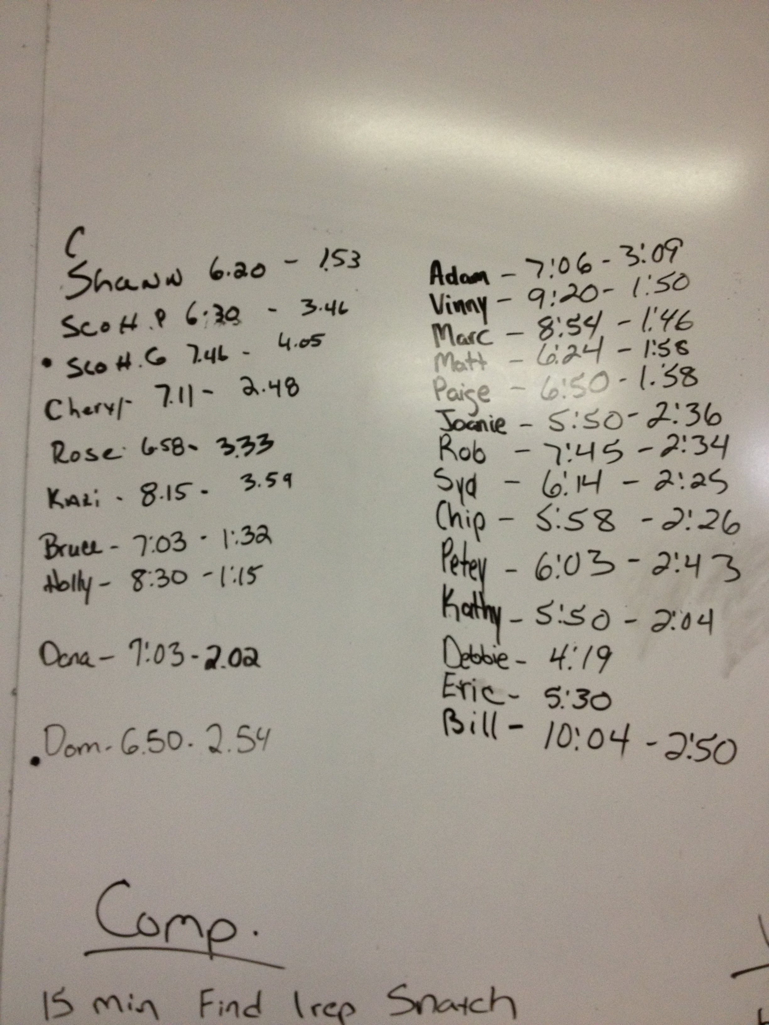 5,6,9,11 am, 4,5,6 pm November 14, 2012 lumpy6488 Uncategorized Comments Off on 5,6,9,11 am, 4,5,6 pm 5×3 snatch grip push-press Then 7 rounds 7-SDHP 7-Goblet Squats 7-Swings (7 Burpee penalty when KB is set down) Related