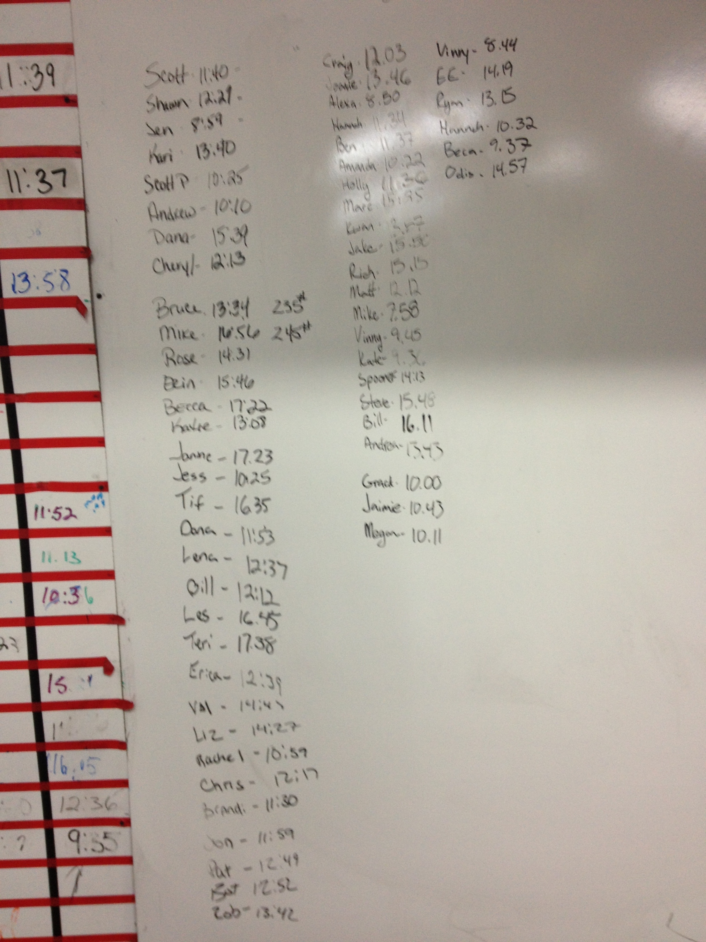 Am5,6,9,11 pm 4,5,6 December 3, 2012 lumpy6488 Uncategorized Comments Off on Am5,6,9,11 pm 4,5,6 Back squat 5×3 find your best 3 90 sec rest Then 3 rounds 30 kb swings 30 box jumps 24/20 30 double under/ 120 jump ropes Related