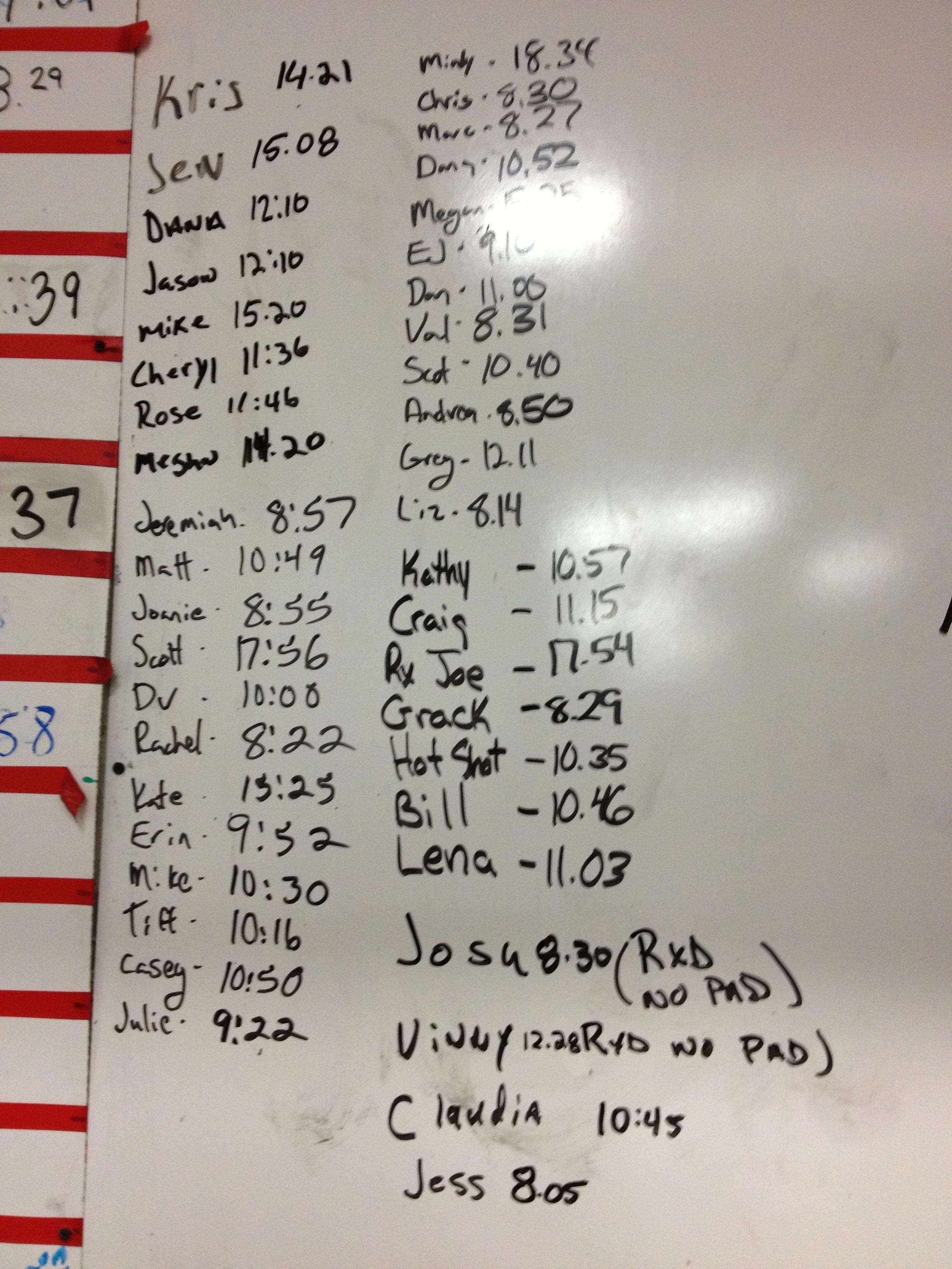 Am 5,6,9,11/ pm 4,5,6 December 25, 2012 lumpy6488 Uncategorized Comments Off on Am 5,6,9,11/ pm 4,5,6 7×2 front squat 3 second pause on the first rep. (90 sec rest) Wod: “J.T.” 21-15-9 reps of: Handstand push-ups Ring dips Push-ups Related
