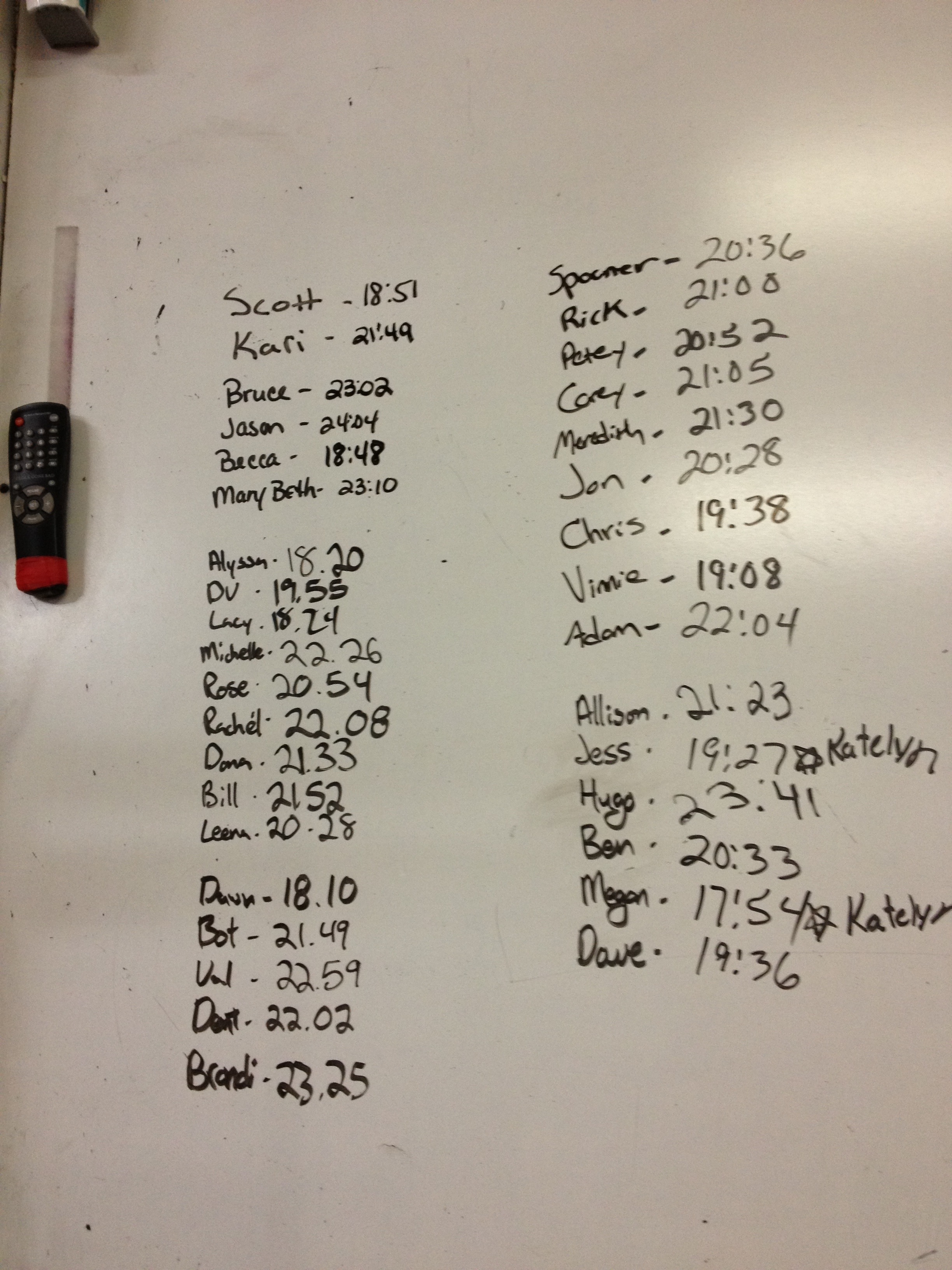Am5,6,9,11 pm 4,5,6 February 14, 2013 lumpy6488 Uncategorized Comments Off on Am5,6,9,11 pm 4,5,6 For time 1000 m row 5 rounds 20 wallballs 20 kb swing 1000 m row Related