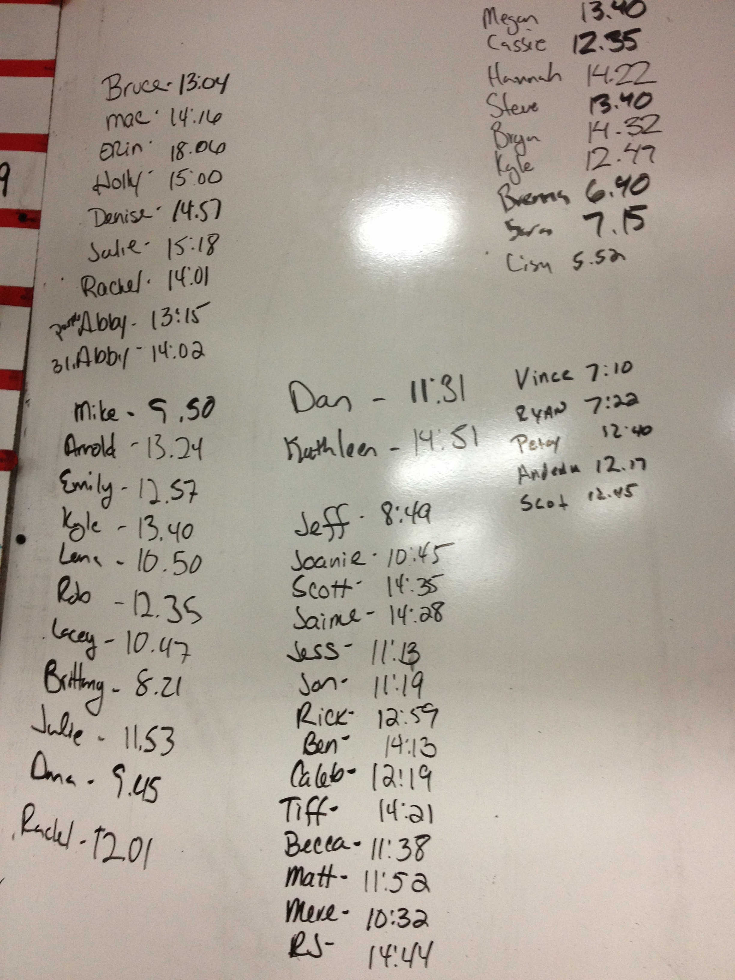 Am 5,6,9,11. Pm 4,5,6 May 22, 2013 lumpy6488 Uncategorized Comments Off on Am 5,6,9,11. Pm 4,5,6 Strength Hang power snatch 5x 1 high hang + 1 hang + 1 ohs Conditioning (Time) 50 walking lunges kb in the front rack 1.5/1 pood 40 ring dips 30 hang power snatch (95/65) 40 ring dips 50 walking lunges kb in the front rack 1.5/1 pood Related