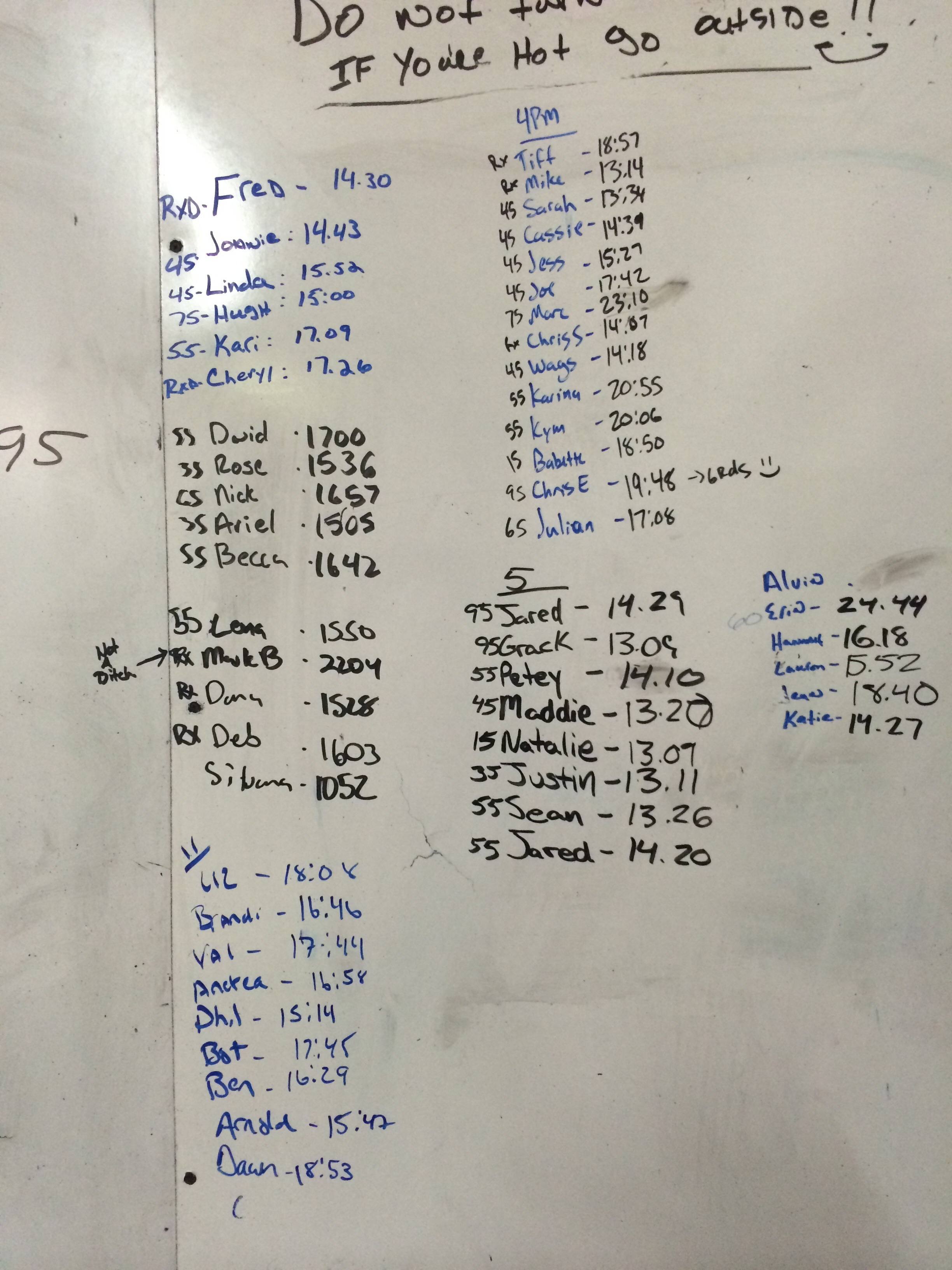 Am 5,6,9,11 pm4,5,6 March 18, 2014 lumpy6488 Uncategorized Comments Off on Am 5,6,9,11 pm4,5,6 “Nancy”. Complete 5 rounds for time: Run 400m 15x overhead squat (65/95) Related